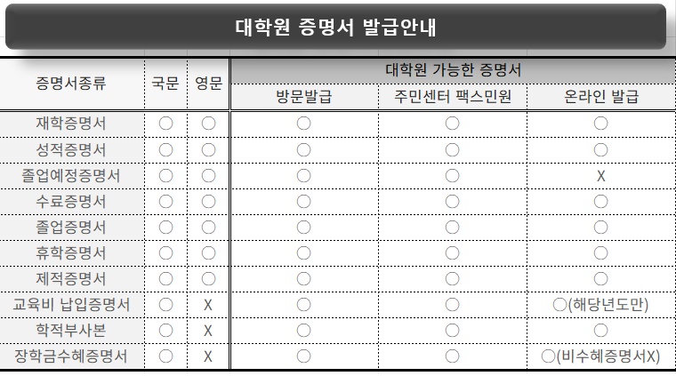 대학원 각종 증명서 발급방법에 대해 안내드립니다.